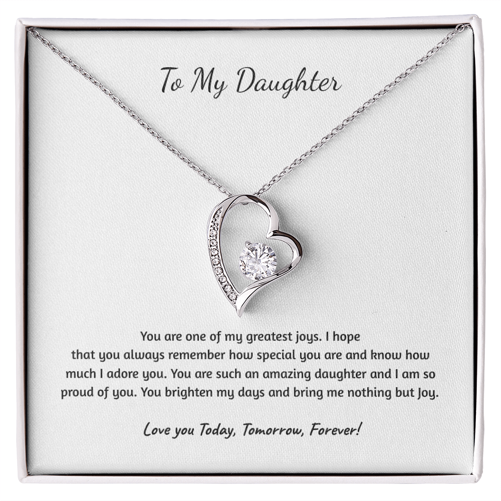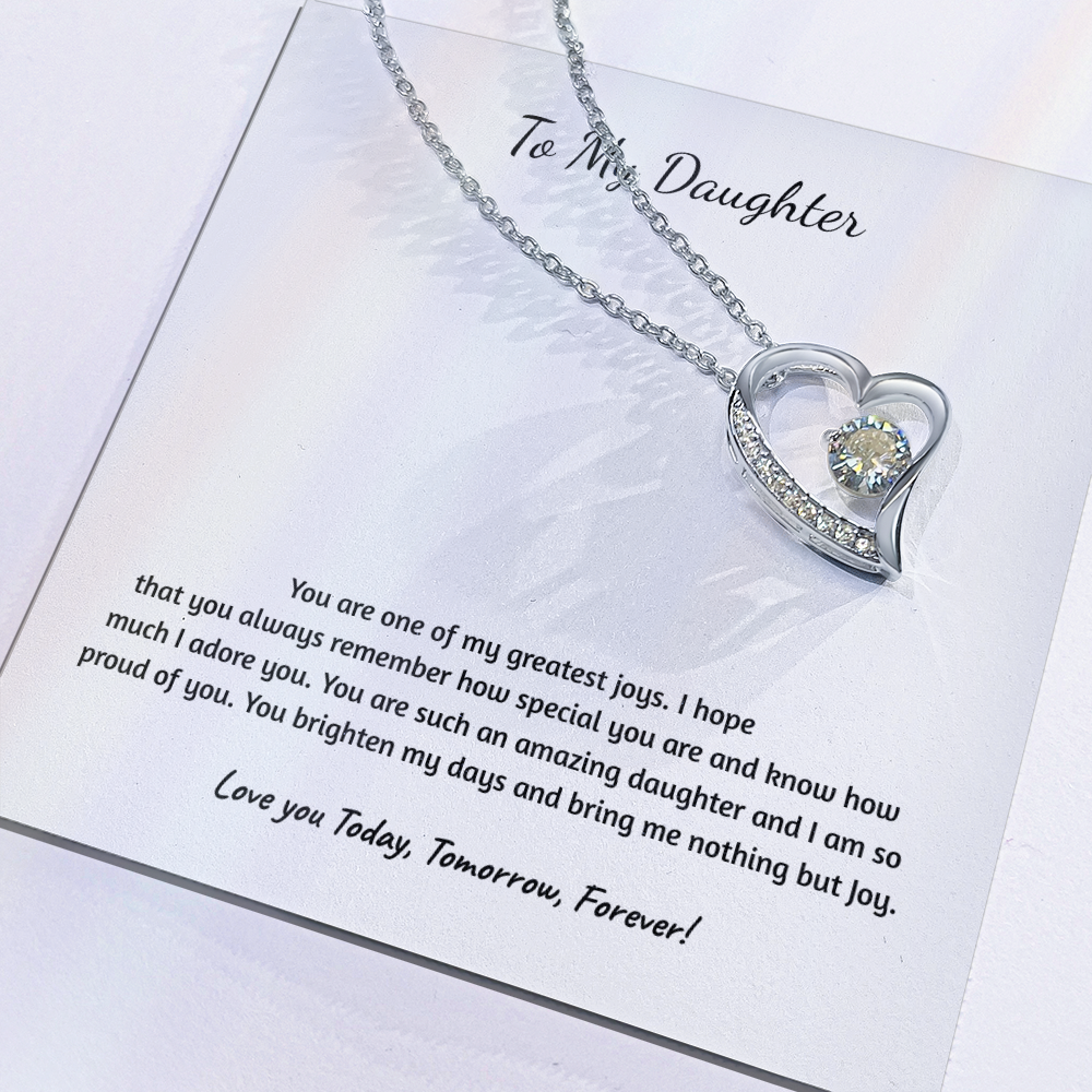 The dazzling Forever Love Necklace is sure to make her heart melt! This necklace features a stunning 6.5mm CZ crystal surrounded by a polished heart pendant embellished with smaller crystals to add extra sparkle and shine. Beautifully crafted with either a white gold or yellow gold finish, be sure to give her a classic gift she can enjoy everyday.